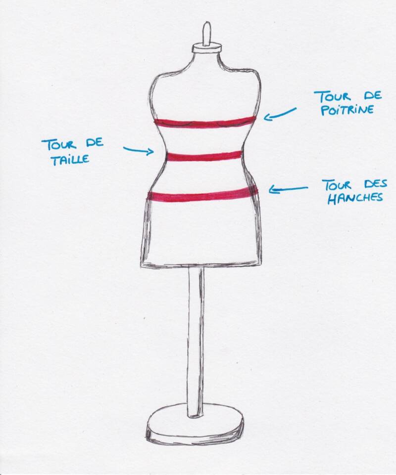 Tour de taille : Mesurez autour du point le plus étroit (généralement juste au dessus du nombril), tout en gardant le mètre ruban légèrement lâche.